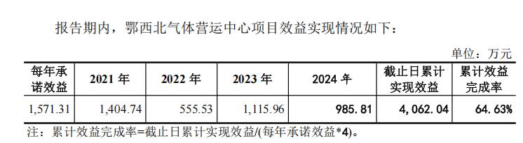 电子特气体未来营收能否兑现还是未知之数。公司此前募投项目“鄂西北气体营运中心”实际效益远低于承诺效益。其每年承诺效益为1570万元,而实际上2021到2024年完成的效益分别约为1400万元、555万元、1115万元和985万元,其累计效率完成率不足65%。