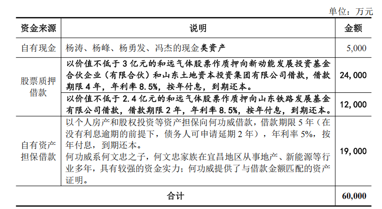 其中3.6亿元的借款以上市公司和远气体的股票作为质押物。